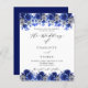 Um fundo branco, decorado com flores azuis e brancas. Personalize e adicione seus nomes e detalhes. Fundo: fundo azul. 1 folha = 1 convite impresso de borda a borda.