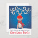 Reindeer vem do convite da festinha. Convidado de festa sazonal ilustrado com bom coração, personalize com seus próprios detalhes. Um convite para elevar na moda bonitinho. Ilustrada exclusivamente por Sarah Trett.