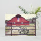 Recebendo Convites de Casamento do País do Barno Vermelho com um celeiro vermelho no fundo com uma bandeira americana pendurada no celeiro. O portão do gado tem uma estrela ocidental feita de galhos e arame farpado pendurado no portão. Um lado diz: "Estamos a ser apanhados!" e o outro lado tem o convite de casamento. Fácil de personalizar o modelo. Estas são excelentes para casamentos de celeiro, casamentos de fazenda ou rancho, e qualquer um que procura um convite para casamento no país rústico.