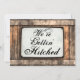 Recebendo Convites para Casamento de Madeira Rústica com um fundo de madeira aflita. Um lado diz: "Estamos a ser apanhados!" e o outro lado tem o convite de casamento. Fácil de personalizar o modelo. Estas são excelentes para casamentos de celeiro e qualquer um que procura um convite para casamento no país rústico.