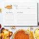 Esta cor d'água pintada manualmente é de uma torta de abóbora com folhas de outono está em um cartão de receita elegante.