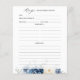 Cartão de receita de chá de panela floral azul-poeirento com buquê elegante de azul-marinho, azul-real, branco, marfim de champanhe, rosa de cor-de-rosa, botões de flor ranúnculo e folhas de eucalipto verde-sábio e buquê de cor-de-água elegante. Entre em contato comigo para obter ajuda sobre a personalização ou se você precisar de outro produto com este design.