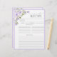 Projetada para acompanhar nosso Binder de Receita do Chá de panela correspondente, parte de um Chá de panela Suite correspondente, esta placa de receita bonito apresenta uma combinação luxuosa de florais de cor d'água bonito, no tema de cor da lavanda lilás da tendência. elegância clássica com uma reviravolta moderna, incorporando caligrafia escrita à mão, e tipografia serif elegante. Há muitas linhas para a receita, e a parte de trás corresponde à frente, para que cada convidado possa dar à noiva duas receitas. Uma margem também foi deixada na página para acomodar a margem. CLIQUE AQUI para coordenar o Binder de Receita: https://www.zazzle.com/elegant_lilac_lavender_floral_bridal_shower_recipe_3_ring_binder-256545886977719342 Ver aqui toda a suíte: https://www.zazzle.com/collections/elegant_lilac_lavender_floral_bridal_shower-119730120254921497 Contactar o designer para produtos correspondentes. Copyright Anastasia Surridge for Elegant Invites. Todos os direitos reservados.
