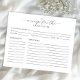 Colete pratos significativos e sabedoria da cozinha com este cartão de atividade "Receber para a Noiva a Ser". Apresentando um roteiro minimalista e um layout limpo, os hóspedes podem compartilhar suas receitas favoritas com a noiva, criando um manto sincero e prático que ela vai valorizar. Perfeito para chás de panela modernos, brunches ou celebrações temáticas de cozinha. Parte do Chá de panela mínimo moderno | A coleção Future Mrs.