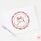 Receitas de Feriados Etiqueta para Presente de Comida Caseira... Se você estiver presenteando os destinatários do seu cartão com um dos nossos cartões de Natal "Receitas de Feriados" este ano, *E* o presente de comida real que é exibido no cartão de receita também, aqui está uma etiqueta para presente de comida com texto de exemplo que diz: "Bolinhos de Mincemeat de Feriado... Feliz Natal dos Westfields." O design da etiqueta adesiva de 3 polegadas apresenta uma borda xadrez vermelha e branca com tema de feriado em torno do logotipo Receitas de Feriados, completo com o grande laço vermelho cercando um batedor de assar e um rolo de massa. O texto de exemplo na etiqueta pode ser rapidamente revisado com suas próprias informações usando o modelo de personalização. Minha avaliação desta deliciosa receita de bolinhos e fotos adicionais estão em https://