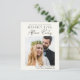 Gelado elegante e econômico, salve o anúncio da data para seu posto ou pequena recepção de casamento. A frente mostra sua foto de casamento, "Salve a data para nossa festa feliz de sempre" em uma simples tipografia e um roteiro moderno, seus primeiros nomes e data de recepção. Ao contrário, personalize sua mensagem de salvamento em mais detalhes e adicione seus nomes casados em um script semelhante a assinatura.