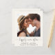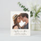 Simples e chic light elopement amigável ao orçamento ou anúncio privado de casamento e convite de recepção de casamento poste com sua fotografia, "feliz para sempre" escrito em um roteiro de na moda com baloiços e seus primeiros nomes, data de casamento e local na tipografia moderna. Ao contrário, personalize o seu anúncio e convite com mais detalhes, introduza o seu endereço de Web site de casamento para criar um código QR para os seus convidados a procurar mais informações e a RSVP online e adicione os seus nomes num script semelhante a assinatura.