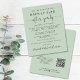 Elegante e amigável em sábio verde salve o anúncio de data para uma recepção ou festa para celebrar seu casamento entre elopeamento e privado. "Salvar a data para nossa festa feliz sempre depois" é escrito em uma simples tipografia e um roteiro de na moda com balanços; personalize seu anúncio de casamento, adicione festas ou recepção salve os detalhes da data e adicione seus nomes em um roteiro semelhante a assinatura. No verso, insira o endereço URL do seu site de casamento para criar um código QR para os convidados pesquisarem para acompanhar as suas fotos e eventos de casamento e adicione os seus primeiros nomes e datas de casamento e de recepção.