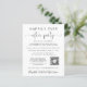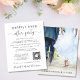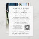 Eleição orçamental ou anúncio privado de casamento e convite de festas de recepção de casamento ou celebração. A frente apresenta "Felizmente Sempre Depois da Festa" em uma simples tipografia e um roteiro elegante com batidas, seu anúncio de casamento e convite de recepção, um código QR vinculado ao seu site de casamento para seus convidados pesquisarem mais informações e RSVP online, e seus nomes em um roteiro semelhante a assinatura. Insira facilmente seu endereço de URL do site de casamento para criar automaticamente o código QR e adicionar suas iniciais no topo (as iniciais modelo são dimensionadas adequadamente para manter o código QR digitalizável; você deve verificar digitalizando sua personalização com seu telefone antes de fazer o pedido). O verso mostra sua foto favorita do casamento, seus nomes e data do casamento.