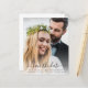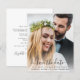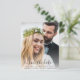 Elegante e amigável, salve o anúncio da data para sua elopeia postada ou pequena recepção de casamento com "salve a data para nossa festa feliz para sempre" em uma simples tipografia moderna e um roteiro de na moda com balsas sobrepondo sua foto. Adicione seus nomes, data e local. No verso, você pode personalizar os detalhes.