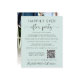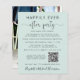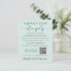Elemento verde de menta leve e orçamental ou pequeno anúncio de casamento e recepção de casamento ou convite de festas de celebração. A frente apresenta "Felizmente Nunca Depois da Festa" em uma simples tipografia e um roteiro elegante, e você pode personalizar seu anúncio e convite com mais detalhes, digitar o URL do seu site de casamento para criar um código QR para seus convidados pesquisarem mais informações e RSVP on-line, e adicionar seus nomes em um script semelhante a assinatura. O verso mostra sua foto, seus primeiros nomes e a data do casamento.