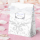 Aqui está a caixa do favorito estilo tenda. Esta caixa coordena-se com o convite de casamento e o convite de recepção do templo. Tem o padrão de coroação prateada em todos os lados desta caixa de favor. Nomes personalizados dos recém-casados na aba superior. Para personalizar os nomes, clique no botão "desdobrado" depois de clicar no botão personalizar. Personalize este item de acordo com os seus desejos.