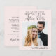 Rosas claro amigáveis ao orçamento salvam a data de uma recepção ou festa para celebrar seu elopeamento ou casamento privado que mostra sua foto do dia do casamento, "Salve a data para nossa festa feliz" em uma simples tipografia e um roteiro moderno e seus nomes e data de recepção. Ao contrário, personalize sua mensagem de salvamento de data e adicione seus nomes casados em um script semelhante a assinatura.