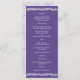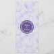 Cartões de cardápio Ultra Violet em roxo e branco com um simples design romântico de videira trará o humor perfeito. Minha obra de arte original de torcer a folhagem em branco e uma borda de lavanda macia na parte superior e inferior da placa de menu - a parte traseira apresenta uma mármore macia com um selo central que consiste nos nomes da noiva e do noivo aninhados em uma coroa botânica correspondente definida em um círculo ultra violeta roxo.