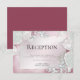 INSERTO DE RECEÇÃO DE CASAMENTO | Fundo luminoso burgundy cintilante e diáfano com folhas de rosa luminosas, folhas de eucalipto, gipsófila e brilhos cintilantes. O verso é uma cor coordenada complementar. Este design fica especialmente bonito na opção de papel Pearl Shimmer. Personalize o texto, estilo de letra, cor e tamanho. Criamos este modelo para facilitar a personalização com suas próprias informações. Este é parte de uma Suite de Papelaria de Casamento completa com papelaria de casamento, chá de bebê e outros eventos. Obra de Arte Original © por WhimsicalArtwork™.