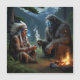 Bigfoot e um nobre chefe indiano partilhando um momento eterno de ligação pelo fogo. Cartão Magnet.