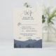 Este retiro para o cartaz RSVP de escolha das montanhas é perfeito para um casamento moderno. O design apresenta uma serena cordilheira azul-aquática com uma floresta de árvores verdes em primeiro plano. Este cartão de resposta do casamento convenientemente pergunta aos hóspedes qual refeição eles gostariam na sua recepção.