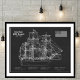 Planos de nave HMS Bounty. O famoso navio do século XVIII, William Bligh. Enviar plano. Planos de Desenho ou Esquemas com contorno de design para Recompensa HMS