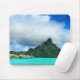 Mousepad com um recurso do overwater na lagoa fantástica de turquesa de Bora Bora com Mt. Otemanu no fundo em Polinésia francesa perto de Tahiti. Grande destino para uma lua de mel!