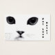 Um clássico olhar preto e branco de gato e traços faciais faz disso um cartão de visita. Apenas os olhos do gato são representados no verso com espaço para suas informações ou texto. Excelente para amantes de gatos e para os profissionais de animais. Também está disponível um cartão de visita correspondente.