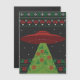 Esta engraçada placa de OVNI apresenta um OVNI que suga o design de suéter do Xmas feio em seu feixe de trator. Além do grande OVNI vermelho, este Cartão apresenta detalhes tradicionais de suéter feio, como flocos de neve, veados saltando e poinsettias, tudo em um olhar cruzado.