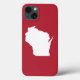 A forma do estado de Wisconsin em vermelho e branco. Adicione uma mensagem de texto personalizada para criar seu próprio dom personalizado.