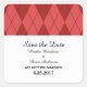 Argyle clássico e elegante Salve os adesivos de Data com um simples fundo de estilo de argilo vermelho. Fácil de personalizar com seus detalhes de casamento. Para obter mais opções de personalização, clique no botão Personalizar Ti.