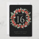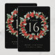 Um cartão preto, de dois lados, de natal/de mesa de férias, com bagos vermelhos pintados manualmente e eucalipto dispostos em uma bela coroa botânica. Todo o texto é totalmente editável. Outros designs, produtos de números de tabela e itens de coordenação estão disponíveis na minha loja.