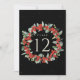 Um cartão preto com dois lados, de natal/festas de férias, contendo bagas vermelhas pintadas à mão e eucalipto dispostos em uma bela coroa botânica. Todo o texto é totalmente editável. Outros designs, produtos de números de tabela e itens de coordenação estão disponíveis na minha loja.