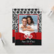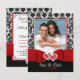 Se você encontrou o amor da sua vida e quer convidar toda a sua família e amigos para testemunhar a junção de suas duas vidas e corações, então este maravilhoso casamento com modelo de foto salve o cartão de data em preto e branco, com corações unidos sobre uma fita vermelha e a imagem do arco correndo pelo fundo é uma forma excelente de anunciar seus próximos nupciais. O lado frontal tem um padrão de fundo damasco preto e branco ao redor de sua foto de noivado acima da fita enquadrada em vermelho, preto e branco. As palavras "Salvar a Data" e a data do casamento são impressas abaixo da fita em um fundo preto em branco e vermelho. A parte de trás tem a mesma design que a parte frontal com os detalhes do seu casamento impressos em uma área de texto branco em vermelho e preto. O texto do website de casamento e um código QR que você trocar por seu próprio também estão incluídos se você tiver um site de casamento que você quer que o pessoas visite através de um código QR. Se precisar de ajuda, envie seu pedido por e-mail para niteowlstudio@gmail.com ou use o recurso de bate-papo Zazzle para entrar em contato.