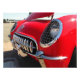 A grade e as luzes da cabeça de um Corvette '54. Tudo vermelho e brilhante no sol de verão. Carros88