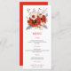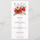Red Cream watercolor florals Foliage Wedding Menu. Lindas florais de aquarela natalícia e folhagem em tons de vermelho e creme, com um fundo vermelho coordenado nas costas. A tipografia está em na moda e facilmente personalizada para seus próprios detalhes.