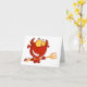 Todo mundo tem um pouco de dentro diabólico. Mostre o seu lado diabólico com este legal design de um diabo segurando um garfo. O diabo tem um grande sorriso no rosto e grandes olhos malvados. Este demônio segurando um forro parece excelente nessas cartas