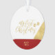 Celebre a temporada com este ornamento de fotos de Natal na moda. Este design apresenta a inscrição dourada moderna "Meu Primeiro Natal" com blocos de cores geométricas (Vermelho e Branco). Você pode adicionar sua foto e personalizar o texto. Mais presentes e cartas de férias estão disponíveis no meu compro BaraBomDesign.