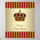 Belo chá de fraldas de príncipe vermelho e ouro e poster festa de aniversário. Você pode escolher seu tamanho, layout e adicionar texto a este elegante chá de fraldas de príncipe vermelho e ouro e poster de festas.