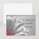 Mostre apreço pelos presentes recebidos após uma festa de noivado, chá de panela ou casamento com os bonito realces vermelhos personalizados de Wedding Flat Obrigado Nota. Personalize-o com os nomes da noiva e do noivo e com a sua própria mensagem pessoal de gratidão do segundo lado. Esta elegante floração personalizada, graças a você, nota uma fotografia floral melhorada digitalmente de uma flor de margarida gerber com uma tonalidade vermelha adicionada e um fundo prateado e cinza.