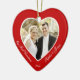 Foto personalizada de coração vermelho nosso primeiro ornamento de Natal com fotos e texto personalizáveis - você pode adicionar fotos, nomes e anos - em forma de coração