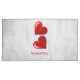 Adicione um toque elegante à sua cama com uma bolsa personalizada de corações vermelhos. A design de pillowcase apresenta um par de corações, uma vinha branca e macia contra um fundo de cinza com uma área para personalizar com o seu nome. Itens de presentes adicionais disponíveis com este design, bem como uma variedade de cores.