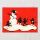 Parece que esses Krampus estão se divertindo. Este impressão Krampus retrata uma luta de bola de neve entre Krampus e um boneco de neve.