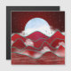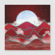 design de paisagem abstrato em vários tons de vermelho com um luar, colinas, árvores, nuvens e aves.