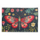 Uma mariposa Vermelha Vibrante ao fundo de um misterioso jardim noturno.