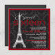 Bonita, moderna e vermelha damask e torre Eiffel doces dezesseis convites de festas.