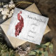 Personalize um anúncio de casamento único com um Pavão Vermelho Salvar a Data. O design de lançamento apresenta um pavão elegante contra folhagem delicada e fundo de grunge e texto que você pode personalizar com os detalhes da data do casamento. Salve ainda o anúncio de data disponível para este design em várias cores.