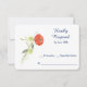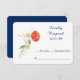 Uma imagem ranúculus de cor vermelha solteiro decora o lado esquerdo deste cartão de resposta do casamento. Seu texto personalizado está à direita em azul marinho. A imagem e o texto são colocados sobre um fundo branco para facilitar a escolha do seu entrevistado. A parte traseira da placa é azul-marinho. Simples e elegante! Este cartão combina com Floral Mason Jar em convites de casamento Azul Marinho e outros produtos de casamento na nossa loja.