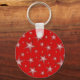 Design moderno com estrelas brilhantes, cintilantes, vermelhas e brancas sobre fundo vermelho. Chaveiro com um design personalizável vermelho e branco para você personalizar com seu próprio texto, imagens e ideias. Criado por Jess Perry usando fotografias originais e técnicas digitais.
