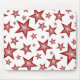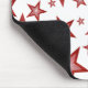 Design moderno com estrelas brilhantes, brilhantes, vermelhas e brancas sobre fundo branco. Mousepad com um design personalizável vermelho e branco para você personalizar com seu próprio texto, imagens e ideias. Criado por Jess Perry usando fotografias originais e técnicas digitais.