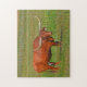 Red Texas Longhorn Cow em Pasture Quebra-cabeça