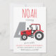 Celebre seu quarto aniversário com nosso encantador convite do Tema do Trator Vermelho! Com um trator vermelho vibrante e sotaques inspirados na fazenda, este convite é perfeito para uma celebração divertida com o tema do trator. Personalize com o nome do seu filho e os detalhes da festa. Ordene agora que as rodas se movam para uma festa de aniversário memorável na fazenda!