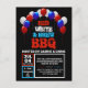 Obtenha seu melhor CHURRASCO em 4 de julho e convide amigos e família com este legal cartão postal Red, White e Brew CHURRASCO 4 de julho de Convite de festas. Este design de 4º de julho apresenta um fundo preto com balões festivos no topo. "CHURRASCO VERMELHO, BRANCO E RESUMO" é escrito em negrito, em tipografia angustiada. Introduza facilmente todas as informações da sua parte com fontes e cores personalizáveis.