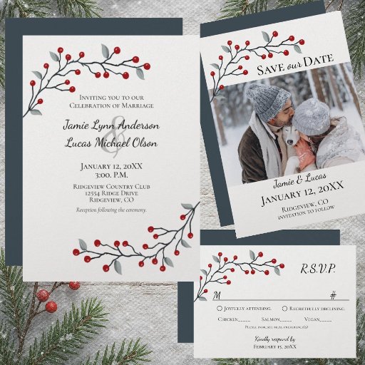 Red Winter Berries Wedding Criado por Lisa Crosby Artistry